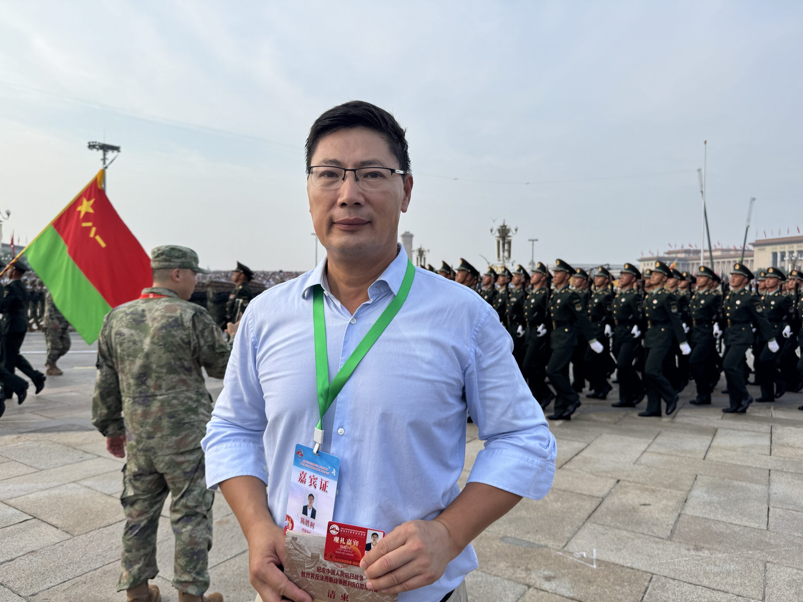 光阴荏苒,转眼已是十年。2025年9月3日,西班牙中国工商联合会主席陈胜利再次应邀参加天安门广场庆祝中国人民抗日战争暨世界反法西斯战争胜利80周年的阅兵仪式。站在历史的节点,陈主席深切感受到祖国日益强大与繁荣,亲眼见证了中华民族的伟大复兴和国力持续攀升的壮丽篇章。