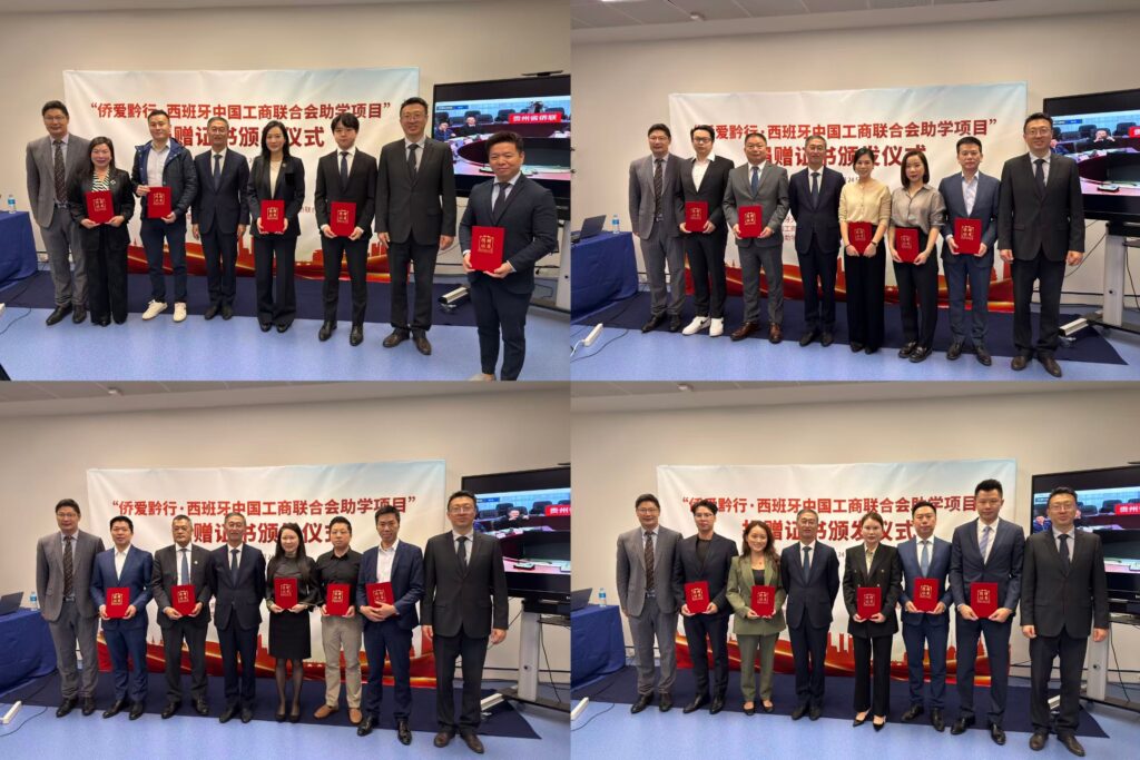 2025年10月24日,西班牙中国工商联合会举办了“侨爱黔行·西班牙中国工商联合会助学项目——西华助学”证书颁发仪式。中国驻西班牙大使姚敬阁下与梁楠参赞应邀出席,西班牙中国工商联合会主席陈胜利、西班牙中国工商联合会常委及“西华助学”发起人李慧哲、“西华助学”负责人,西班牙贵州商会会长谭悦,以及工商联部分理事共同参与了此次活动。